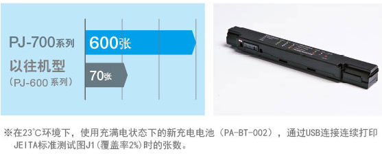 從本次推出的新機(jī)型開始,都將標(biāo)配鋰離子充電電池。因此,與配備鎳氫充電電池的以往機(jī)型相比,大幅提高了可打印張數(shù)。
