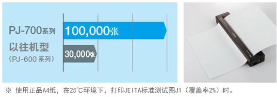 機(jī)器壽命達(dá)到A4尺寸約100000張※,達(dá)到以往機(jī)型的3倍以上??砷L期放心使用。