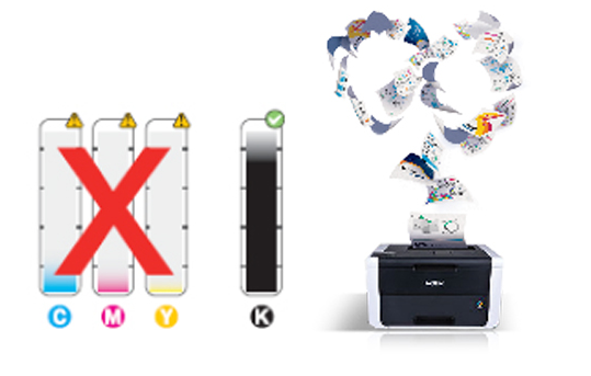 當彩色墨粉用完后,用戶仍然能進行黑白打印,用戶日常辦公不會受到影響。